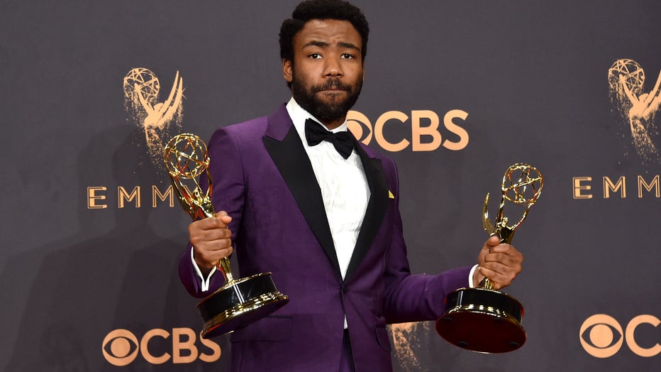LOS ANGELES, CA - SEPTEMBER 17: Actor Donald Glover, winner of the award for Outstanding Lead Actor in a Comedy Series for 'Atlanta,' poses in the press room during the 69th Annual Primetime Emmy Awards at Microsoft Theater on September 17, 2017 in L