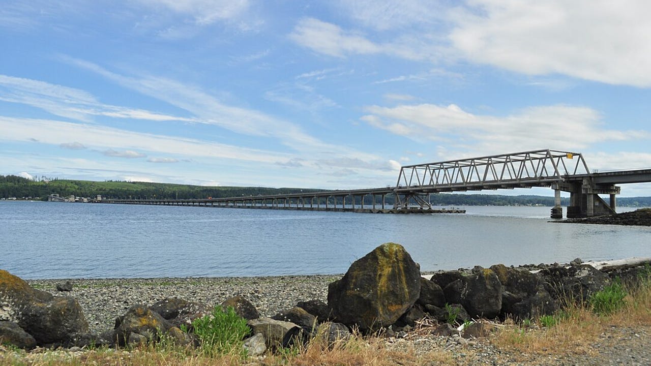 Hood Canal Bridge, Washington (state), U.S., seen from the north (Termination Point). ((Joe Mabel // CC BY-SA 4.0))