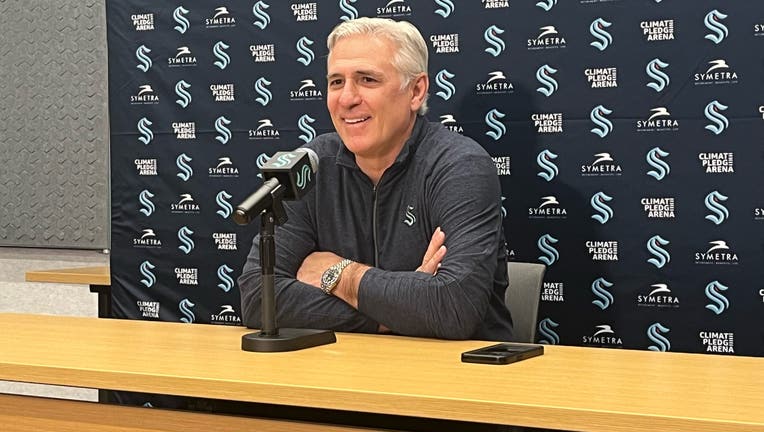 Seattle Kraken general manager Ron Francis speaks with reporters at a season-ending press conference on April 22, 2024 at the Kraken Community Iceplex in Seattle, Wash. (Curtis Crabtree / FOX 13 Seattle)