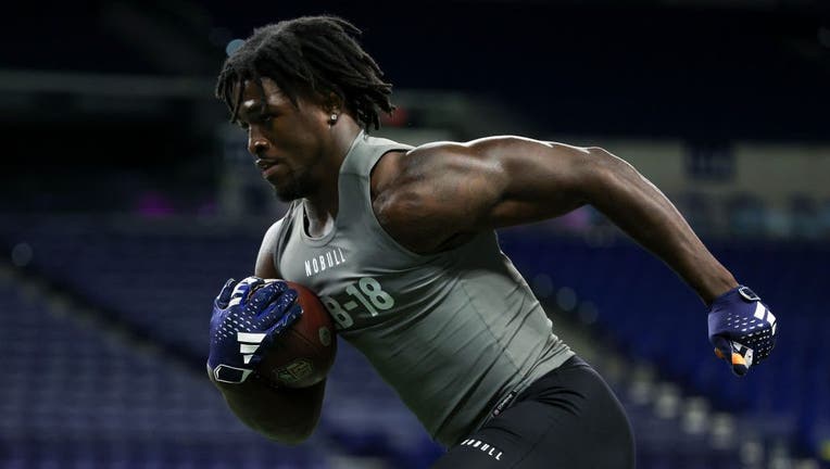 INDIANAPOLIS, INDIANA - FEBRUARY 29: Tyrice Knight #LB18 of UTEP participates in a drill during the NFL Combine at Lucas Oil Stadium on February 29, 2024 in Indianapolis, Indiana. (Kara Durrette / Getty Images)