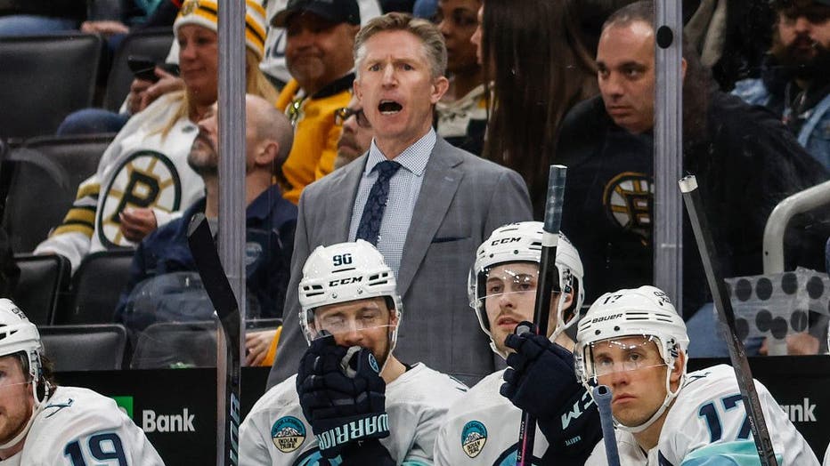 BOSTON, MA - FEBRUARY 15: Seattle Kraken head coach Dave Hakstol during the third period against the Boston Bruins at TD Garden on February 15, 2024 in Boston, Massachusetts. (Winslow Townson / Getty Images)