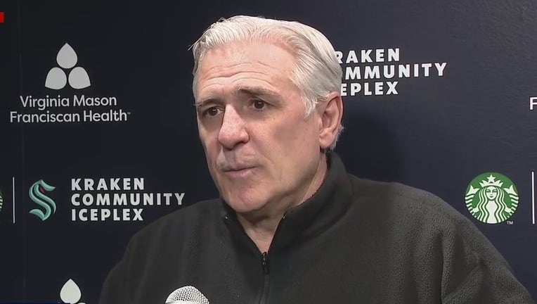 Seattle Kraken general manager Ron Francis speaks with reporters on April 29, 2024 at the Kraken Community Iceplex in Seattle, Wash. about his decision to relieve head coach Dave Hakstol of his duties after three season on the bench. (Bill Bushmaker / FOX 13 Seattle)